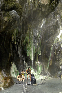 The hot mineral water cascading down